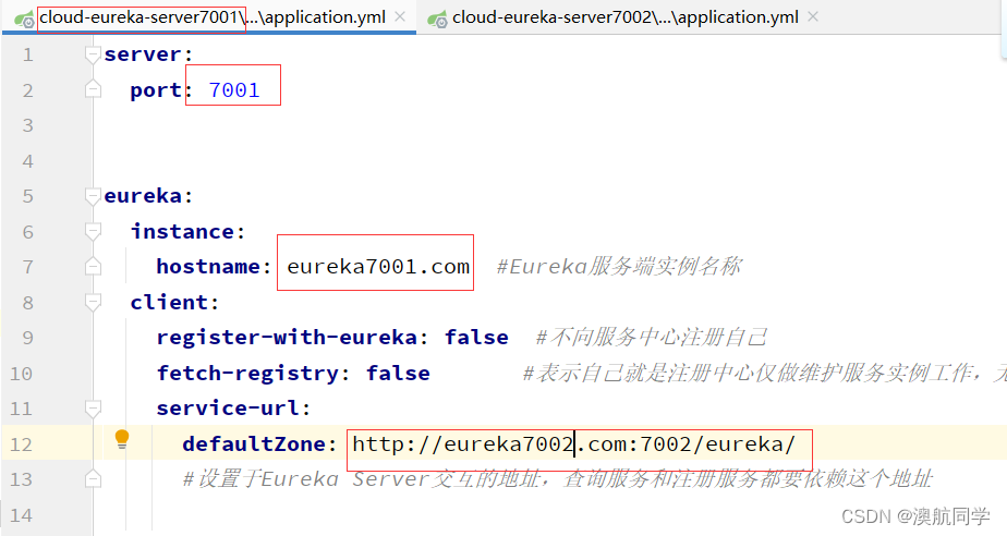然后修改7001和7002的application.yml文件使其相互注册