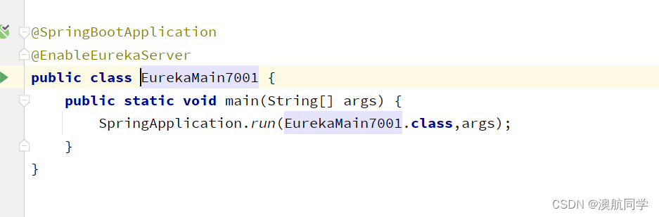 在main下创建启动类com.atguigu.springcloud.EurekaMain7001.java并启动EurekaMain7001,注意:eureka注释@EnableEurekaServer
