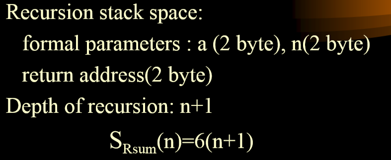 - include space for component variables,dynamical allocated space,recursion stack 包含成员变量、动态分配空间、递归栈空间的内存空间部分
