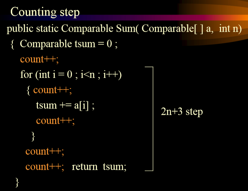 - 1(pos)+1(i)+(n-1)(for): 包含赋值语句,还包括for循环中每次都必须要做的语句。