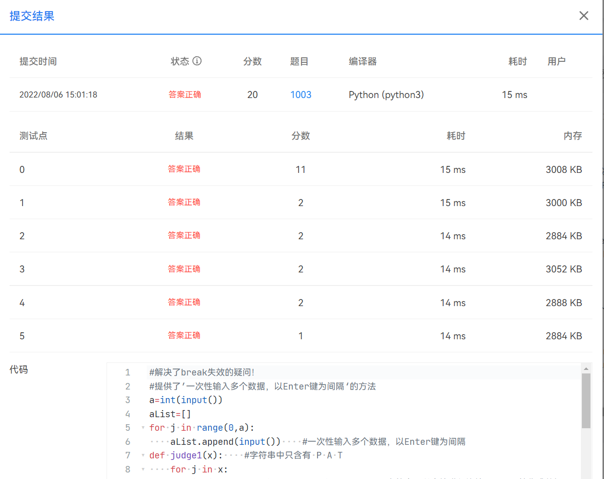 PAT乙级习题1003‘我要通过’ Python版