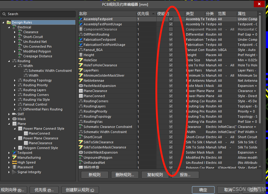 AD常用快捷键及注意事项 1、交叉选择模式:Tools →Cross Select Mode, PCB选中元器件时,原理图中元器件同时选中,反之亦然。4、PCB板上的螺丝孔,需清楚安装方式,安全间距需按照螺帽开始计算,而不是螺丝孔。7、具有极性的器件(如二极管发光二极管、电解、芯片器件) ,封装需有极性标识。10、确认客户LOGO、型号、版本、二维码(尺寸大小)、机型选择、认证信息。9、标识:LOGO、强电标识、防静电标识、CQC认证、工序、螺丝孔。6、电源端子、电机端子线序,更改端子型号前后线序是否一致。