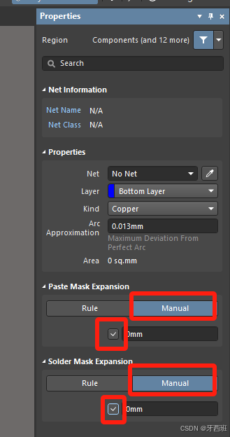 AD焊盘批量改成普通过孔(via) 2.快捷键TVP,将焊盘转换为过孔(工具-转换-选中的自由焊盘转换成过孔)1.选中需要改的焊盘,先把层改到multi-layer。3.改孔径-勾选manual(两个)