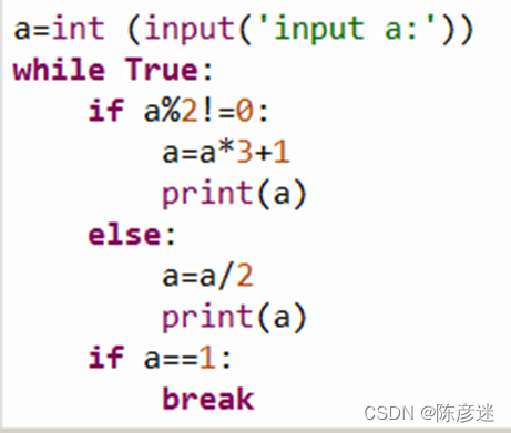 5、考拉兹猜想又称为奇偶归一猜想,是指对于每一个正整数,如果它是奇数,则对它乘3再加1,如果它是偶数,则对它除以2,如此循环,最终都能够得到1。编写一个程序,输入一个正整数,验证考拉兹猜想并打印考拉兹序列。例如,从5开始的考拉兹序列是5,16,8,4,2,1。