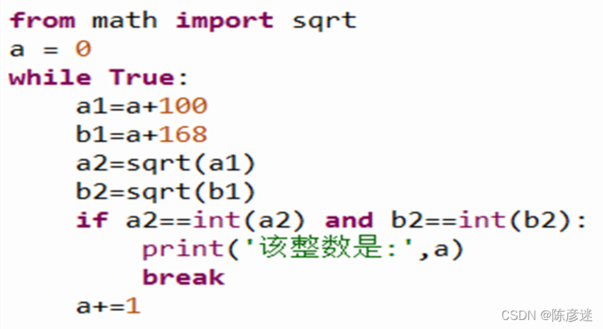 3、一个整数,它加上100后是一个完全平方数,加上168也是一个完全平方数,请问该数是多少?