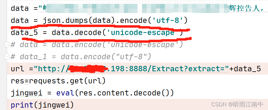 解决方法:先转化成为json形式后,再采用encode你的字符串为utf-8编码