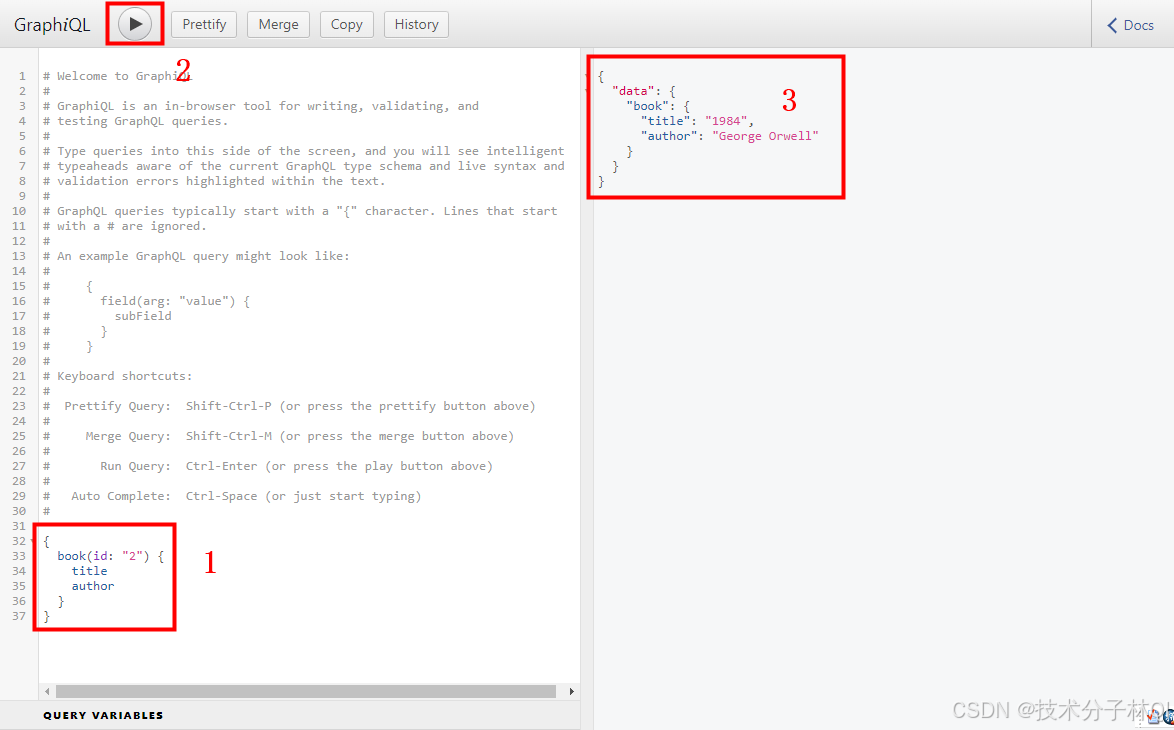 演示效果如下,这将返回id为"2"的书的标题和作者信息。