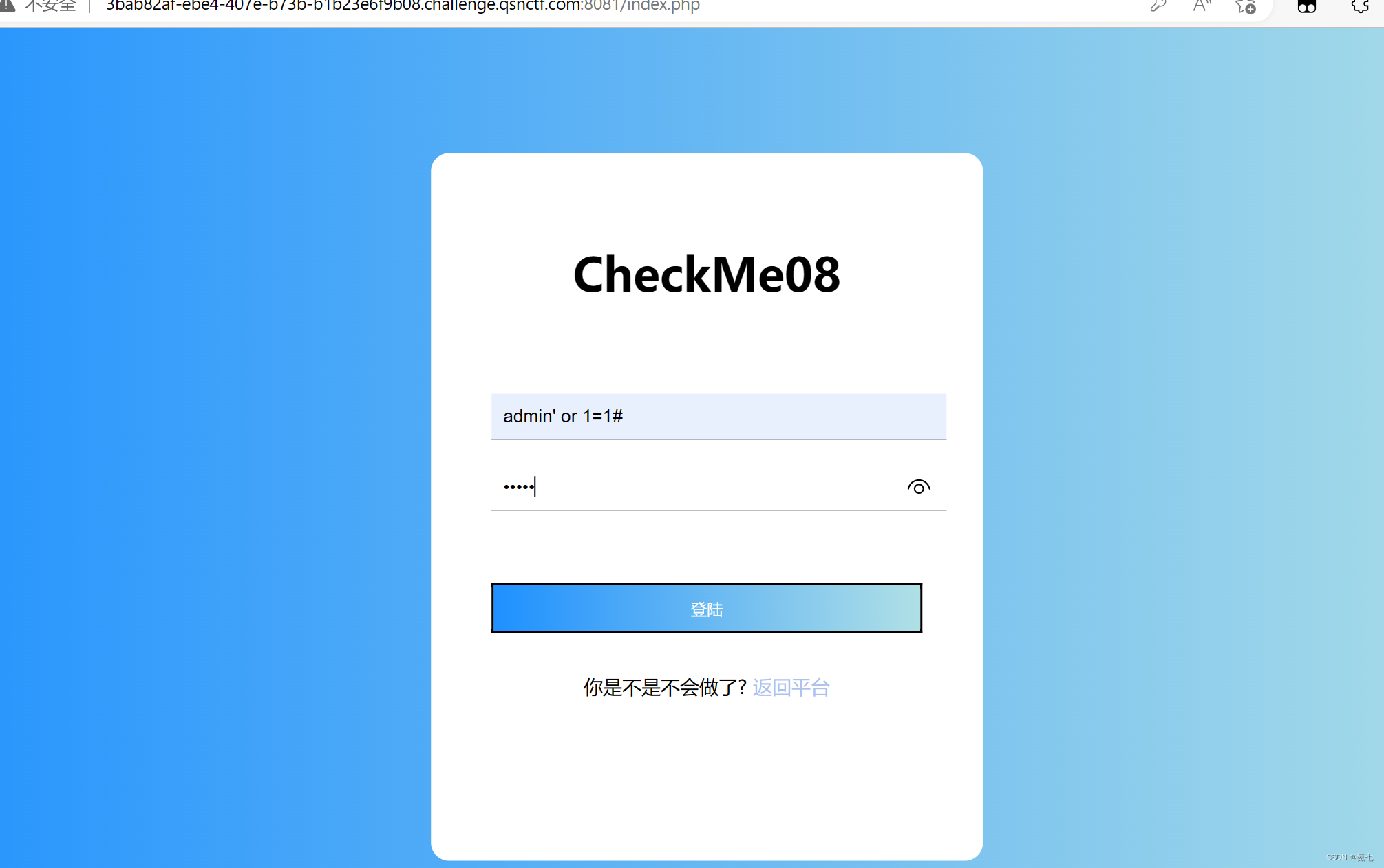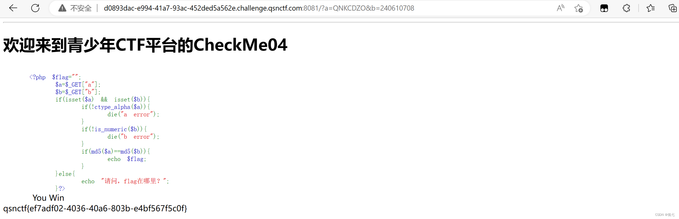分析代码,情况很明了,我们需要传入字符串"qsnctf"的base64加密字符串即可