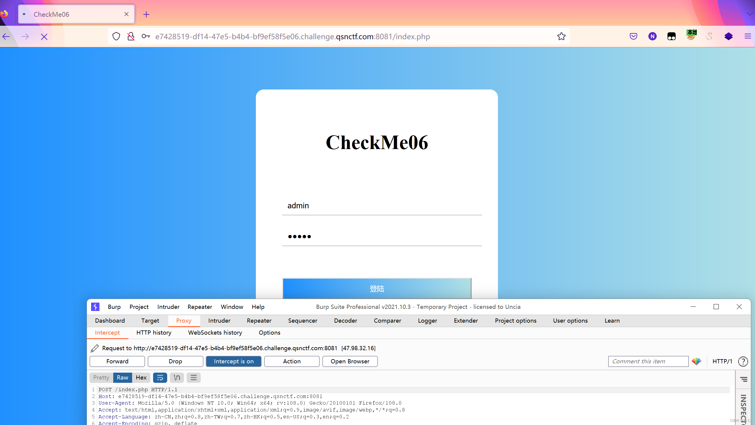 发现是个登录框,且题目提示给了一个字典,猜测用户admin,爆破密码