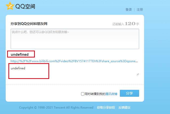 vue 进行qq分享,微博分享,以及qq空间的分享 vue分享到qq空间和qq主要的对与pc页面 分享到qq以及新浪微博的比较简单,使用一个事件调用官方给的接口就能跳转到qq的分享,可以进行自定义自己想要的标题,链接 和图片的内容就可以 qq空间: https://sns.qzone.qq.com/cgi-bin/qzshare/cgi_qzshare_onekey?url=你的网址&sharesource=qzone&title=你的分享标题&pics=你的分享图片&s...