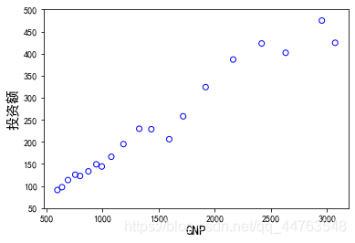 拿到数据的第一步,画散点图,观察投资额与GNP和物价指数的基本关系。