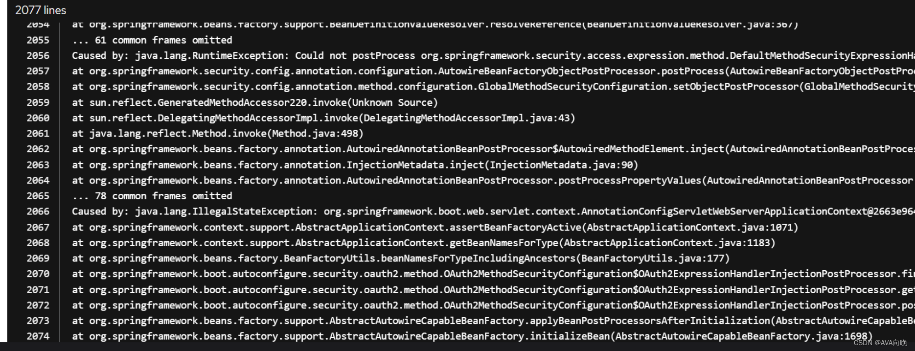 Error creating bean with name ‘metaDataSourceAdvisor‘: Cannot resolve refere解决方案 1.找到最早得日志报错记录,可以重启服务,然后看报错,报错大概率是空指针,解决了就行。
