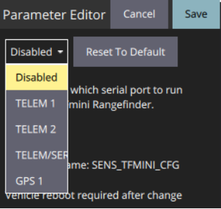 # QGC 参数 SENS_TFMINI_CFG 设置为 TELEM4 或者 GPS2(X7+, v1.13.3)