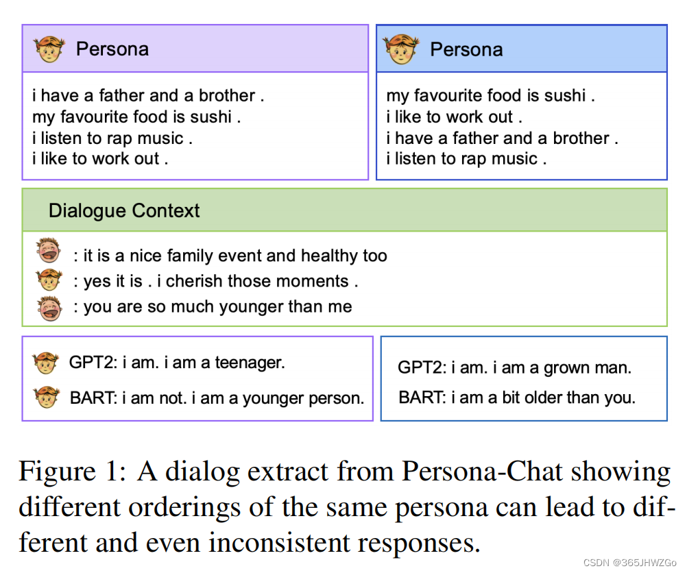 如上图所示,不同的 Persona 对于生成的结果有较大的影响,紫色框的回复明显比蓝色框的回复更具有一致性
