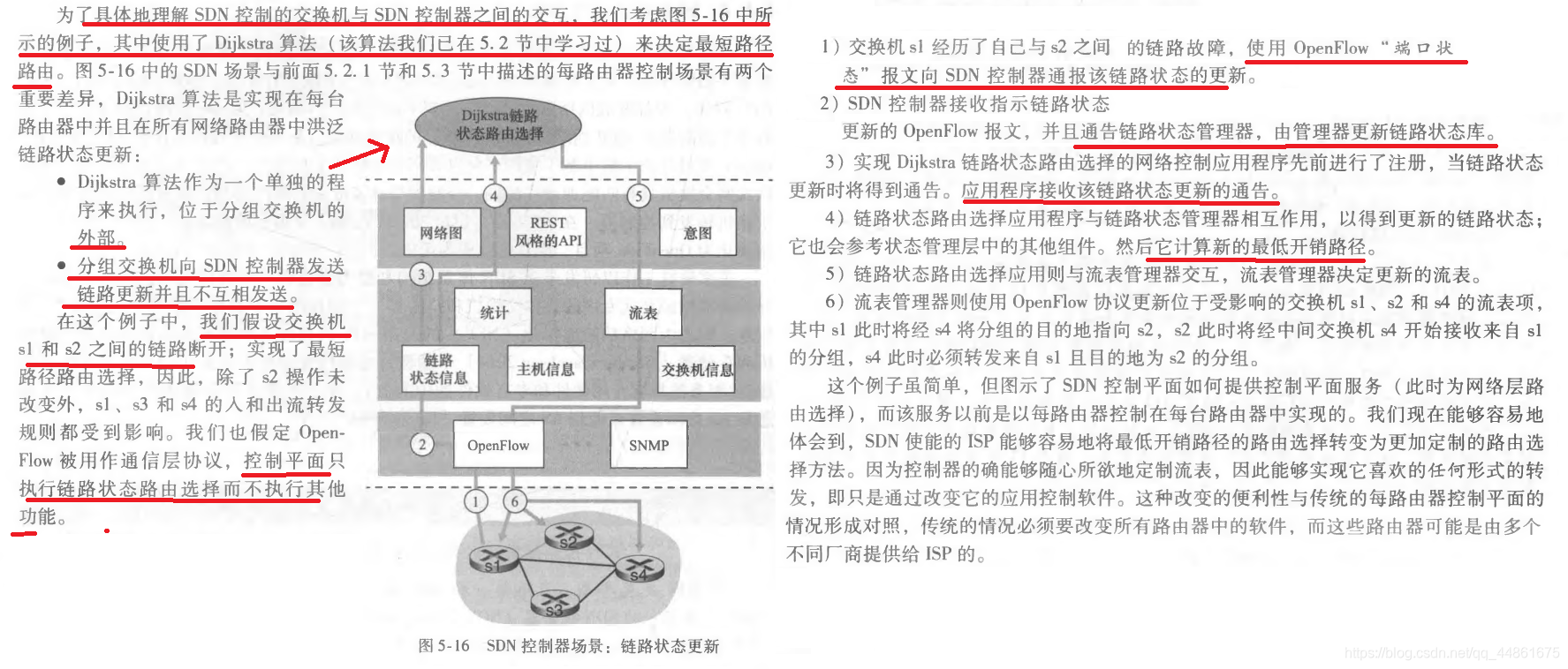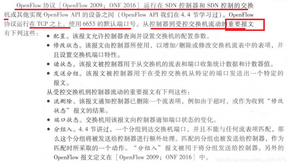 我们只需用简单了解其细节和过程即可。我们要了解控制分组在网络的SDN使能设备中转发的网络逻辑范围,以及这些设备和他们的服务的配置与管理。