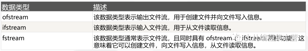 ofstream--只写、ifstream--只读、fstream--可读可写。我们随后根据需要创建一个对象:例如输出流对象ofs的创建 ofstream ofs;