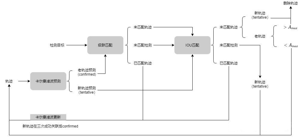 对于每个匹配成功的track,用其对应的detection进行更新,并处理未匹配tracks和detections: