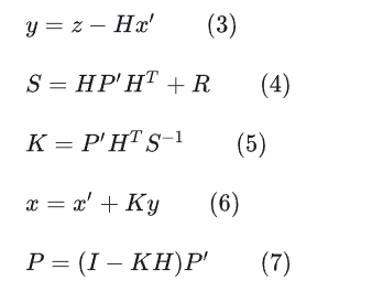 公式6和公式7得到更新后的均值向量x和协方差矩阵P。