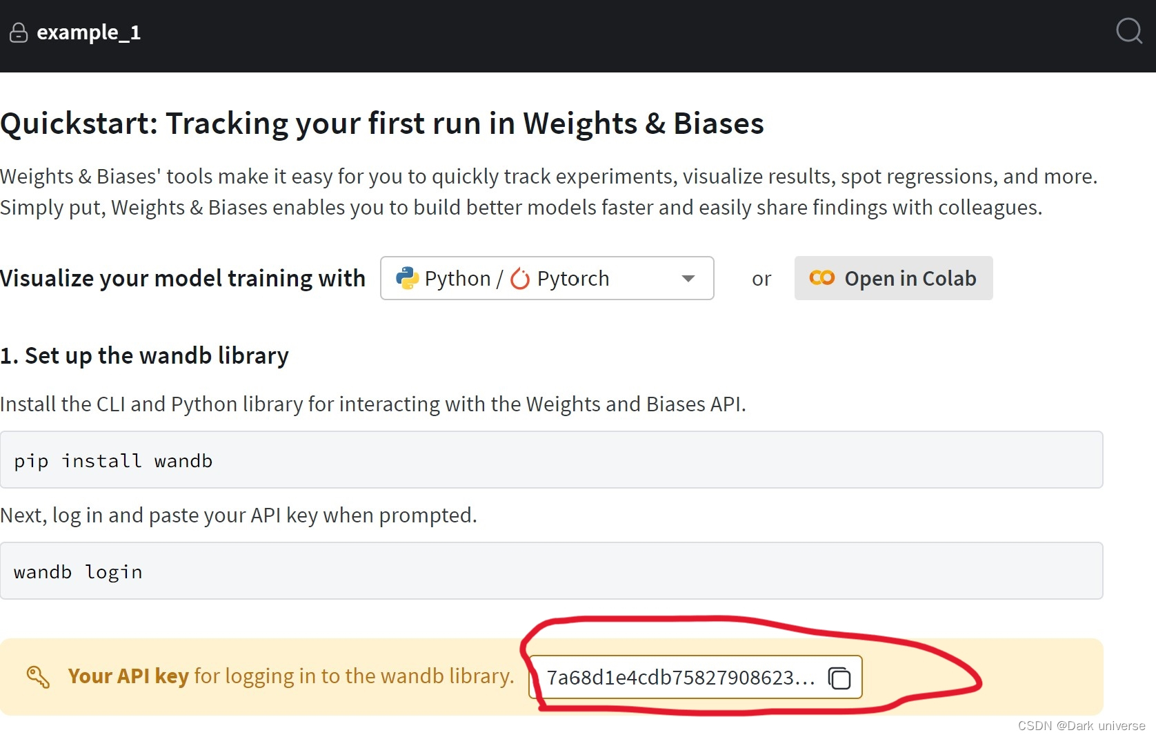 按照安装界面上的提示使用pip命令安装wandb包: