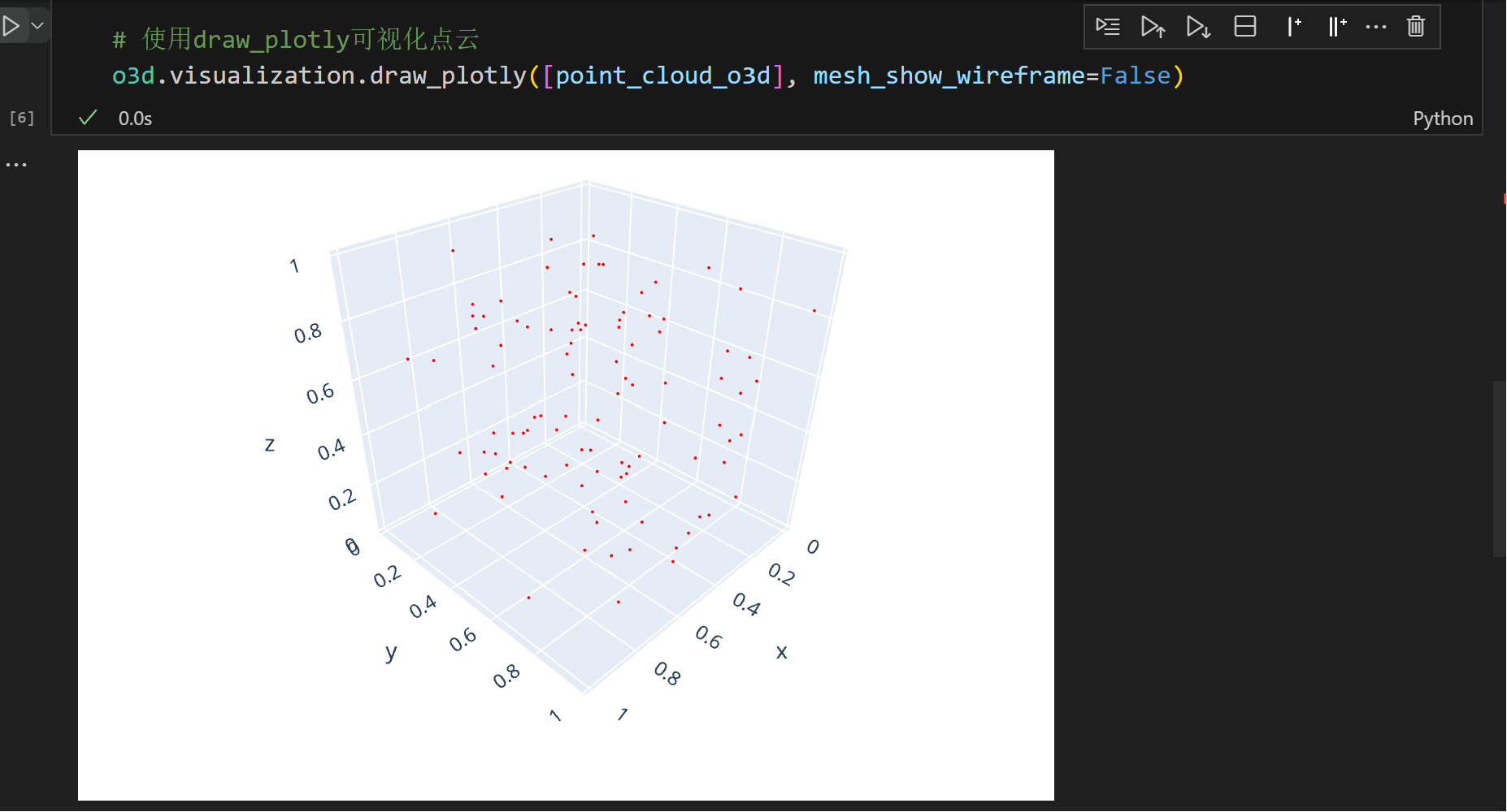 ssh服务器端实现open3d对点云数据的可视化 本文介绍如何在服务器端调用open3d对点云数据进行可视化。具体的策略有:在服务器上创建一个jupyternotebook文件,在文件里使用o3d.visualization.draw_plotly方法进行可视化;将服务器上要展示的数据(点云/mesh)保存成.ply文件,在本地调用open3d进行可视化。同时演示如何将服务器上的6DoF机械臂抓取结果进行本地可视化。