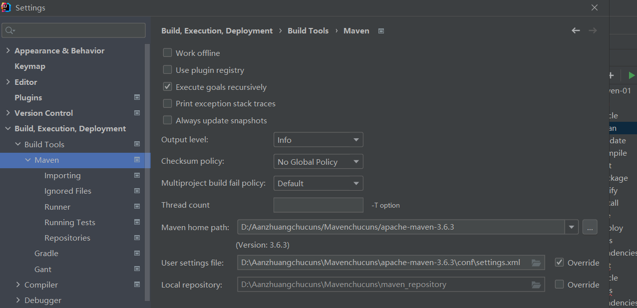 使用自己安装的maven, 需要覆盖idea中的默认的设置。让idea指定maven安装位置等信息