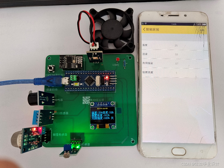 该系统以 STM32 为核心,集成多种模块。ESP866 连接机智云实现手机 APP 远程控制;DHT11 采集温湿度上传;蜂鸣器提示,语音模块识别指令。OLED 屏显示信息,4 按键切换模式、控制档位与摇头。电机驱动与舵机实现风扇调速、摇头,后备电池保障实时时间,有远程、手动等四种工作模式 。