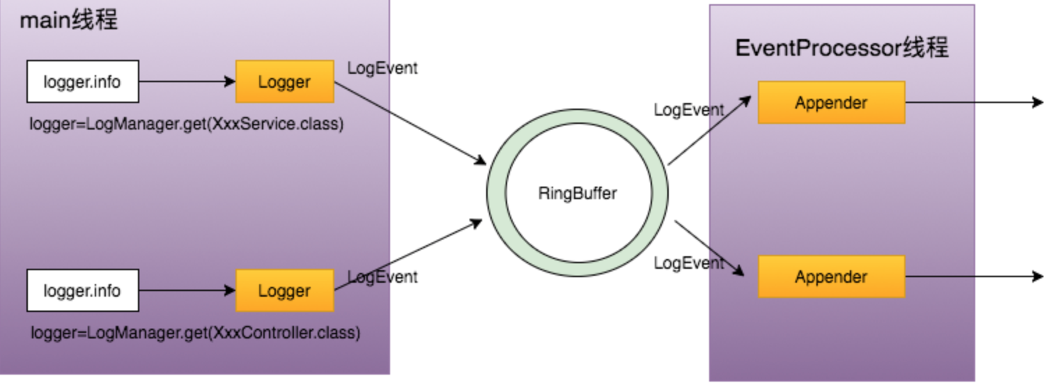 当运行到类似于logger.info、logger.debug的输出语句时,将生成的LogEvent放入RingBuffer中。