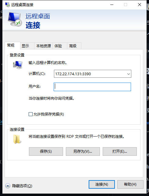 打开微软远程桌面连接,输入ip、端口、ubuntu的用户名,就能直接连接了。