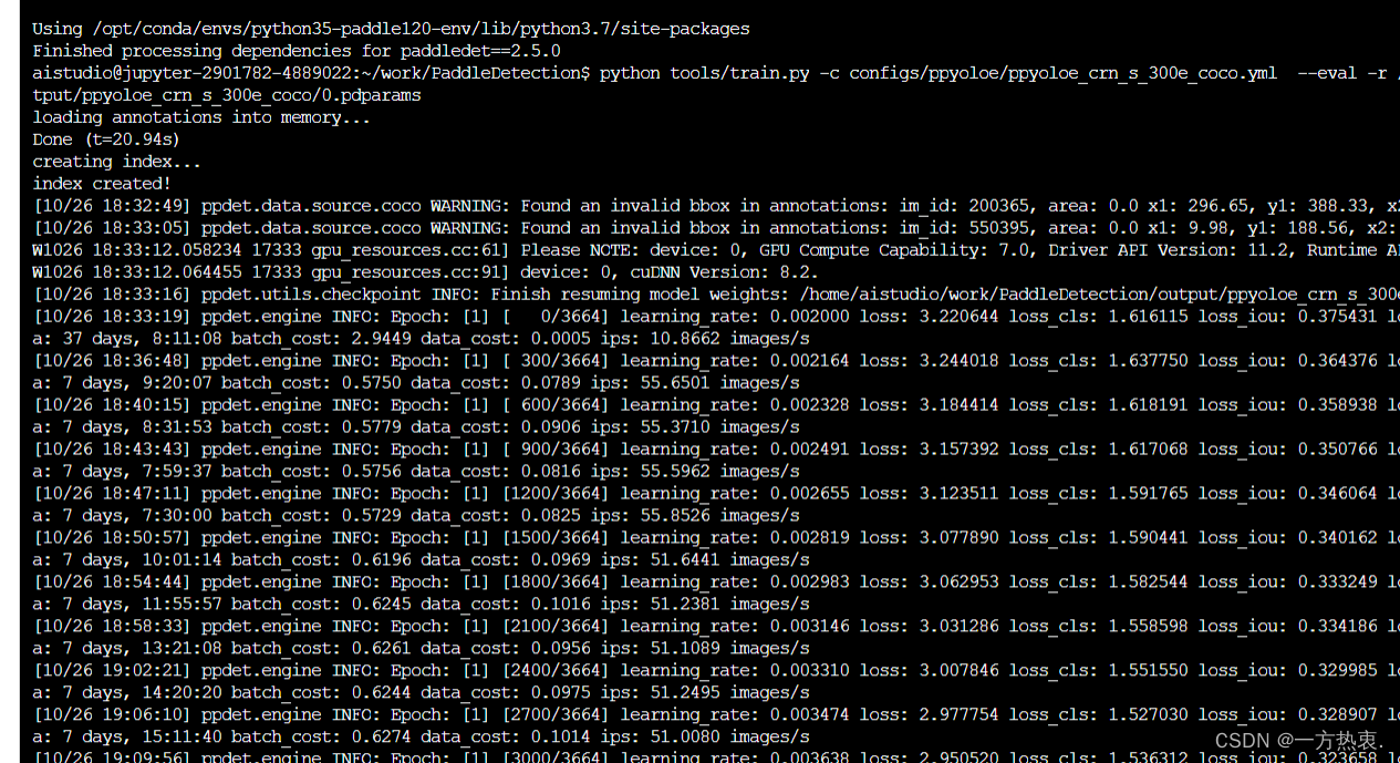 需要啥就可以把default设置成你想要的参数。输入命令后PPYOLOE这个代码就在云平台上训练起来了。这里我们训练s模型的时候建议大家将batchsize设为32,64会爆显存。