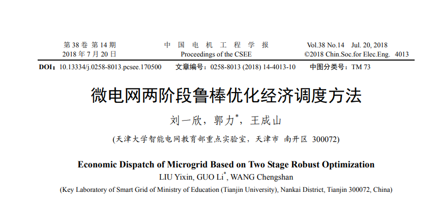 针对微电网内可再生能源和负荷的不确定性,建立了 min-max-min 结构的两阶段鲁棒优化模型,可得到最恶劣场 景下运行成本最低的调度方案。模型中考虑了储能、需求侧 负荷及可控分布式电源等的运行约束和协调控制,并引入了 不确定性调节参数,可灵活调整调度方案的保守性。基于列 约束生成算法和强对偶理论,可将原问题分解为具有混合整 数线性特征的主问题和子问题进行交替求解,从而得到原问 题的最优解。最终通过仿真分析验证了所建模型和求解算法 的有效性,同时给出了分时电价机制下微电网对储能进行调 度的边界条件,可为微电网投资商规划储能及配电网运营商 设计激励机制提供参考。
