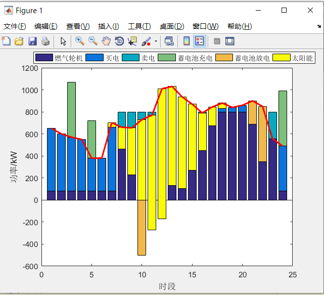 %p_pv_forecast=[0; 0; 0; 0; 0; 0; 40; 200; 425; 731; 884; 1180; 900; 830; 600; 510; 340; 50; 0; 0; 0; 0; 0; 0]; %初始最坏数据