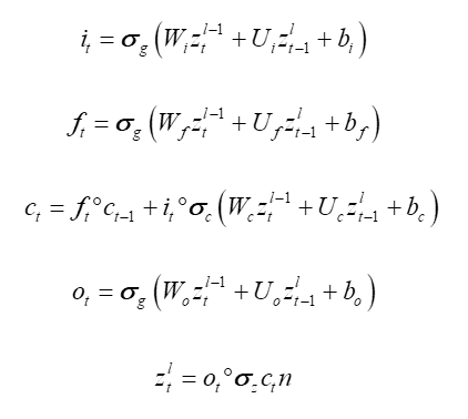 设输入序列共有 k 个时间步,LSTM 门控机制 结构为遗忘门、输入门和输出门,xt携带网络输入值 作为向量引入系统,ht 通过隐含层对 LSTM 细胞进 行输出,ct携带着 LSTM 细胞状态进行运算。LSTM 运算规则如下: