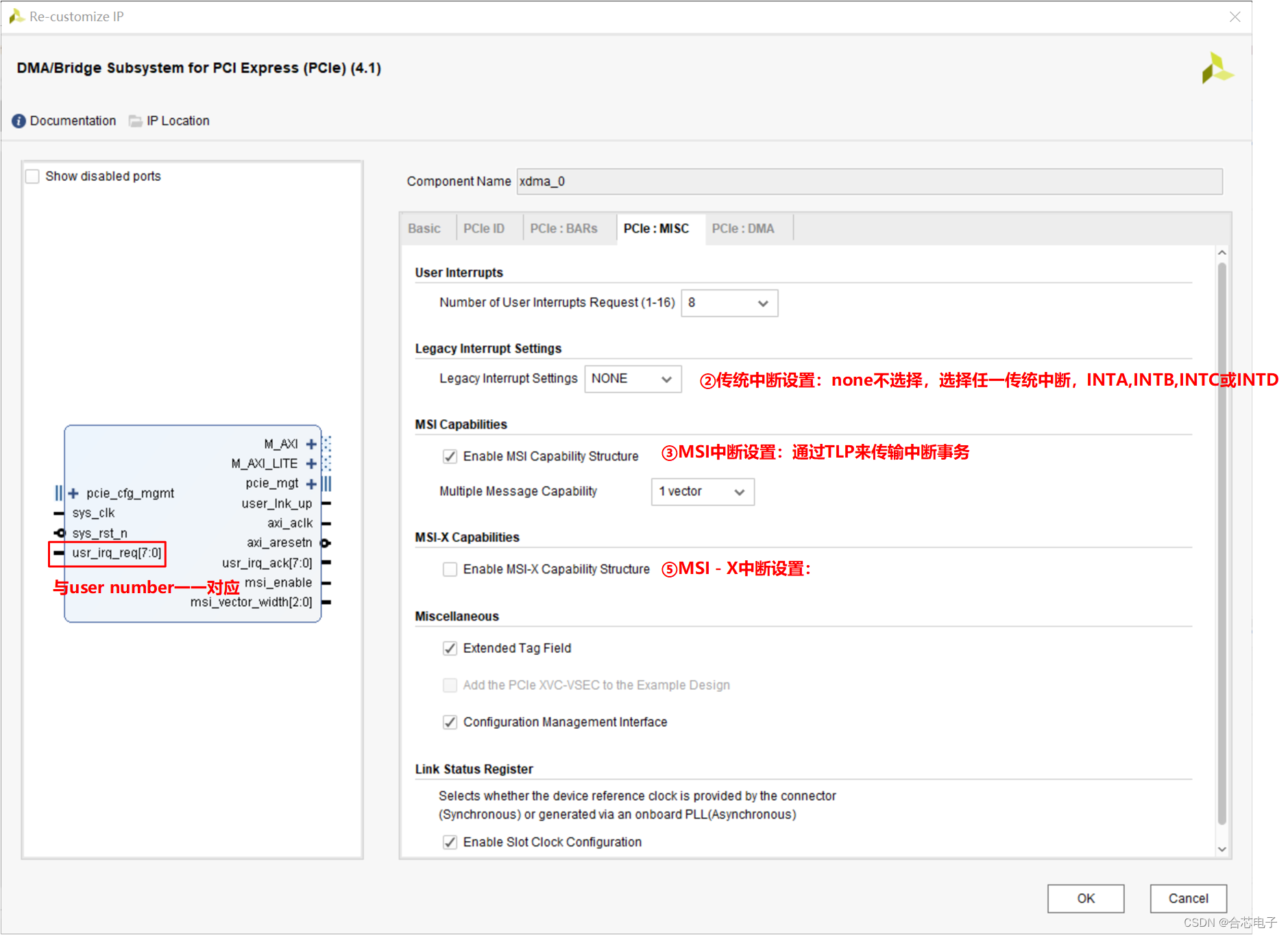 - 对PCIE来说只有三种中断:MSI-X、MSI、Legacy。而user interruput是逻辑侧的控制中断口。
