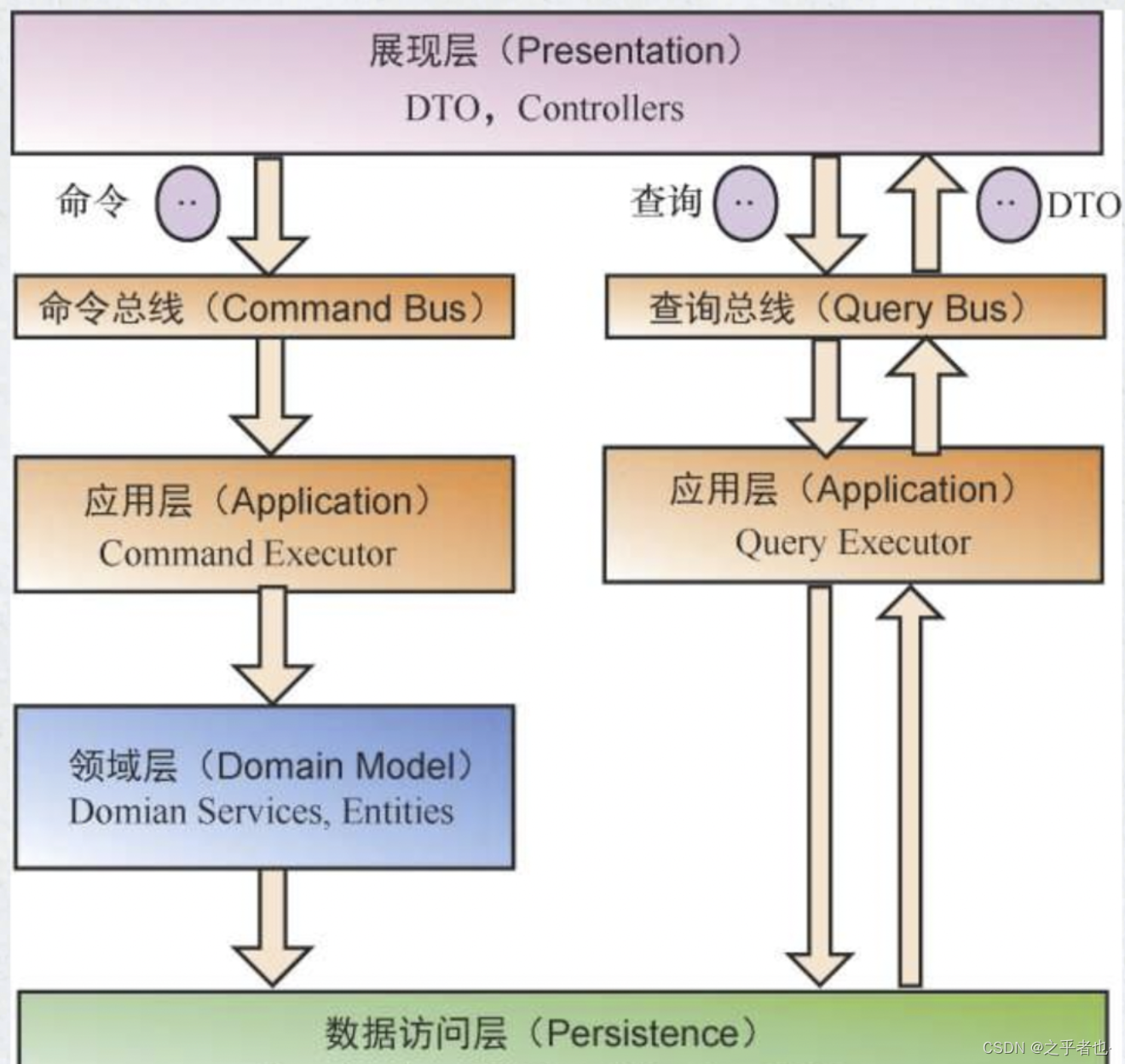 命令查询职责分离模式(Command Query Responsibility Segregation,CQRS)是一种软件架构模式,它通过从业务上分离修改(Command:增、删、改,会对系统状态进行修改)和查询(Query:查,不会对系统状态进行修改)的行为,使逻辑清晰,提高系统的可维护性和灵活性。