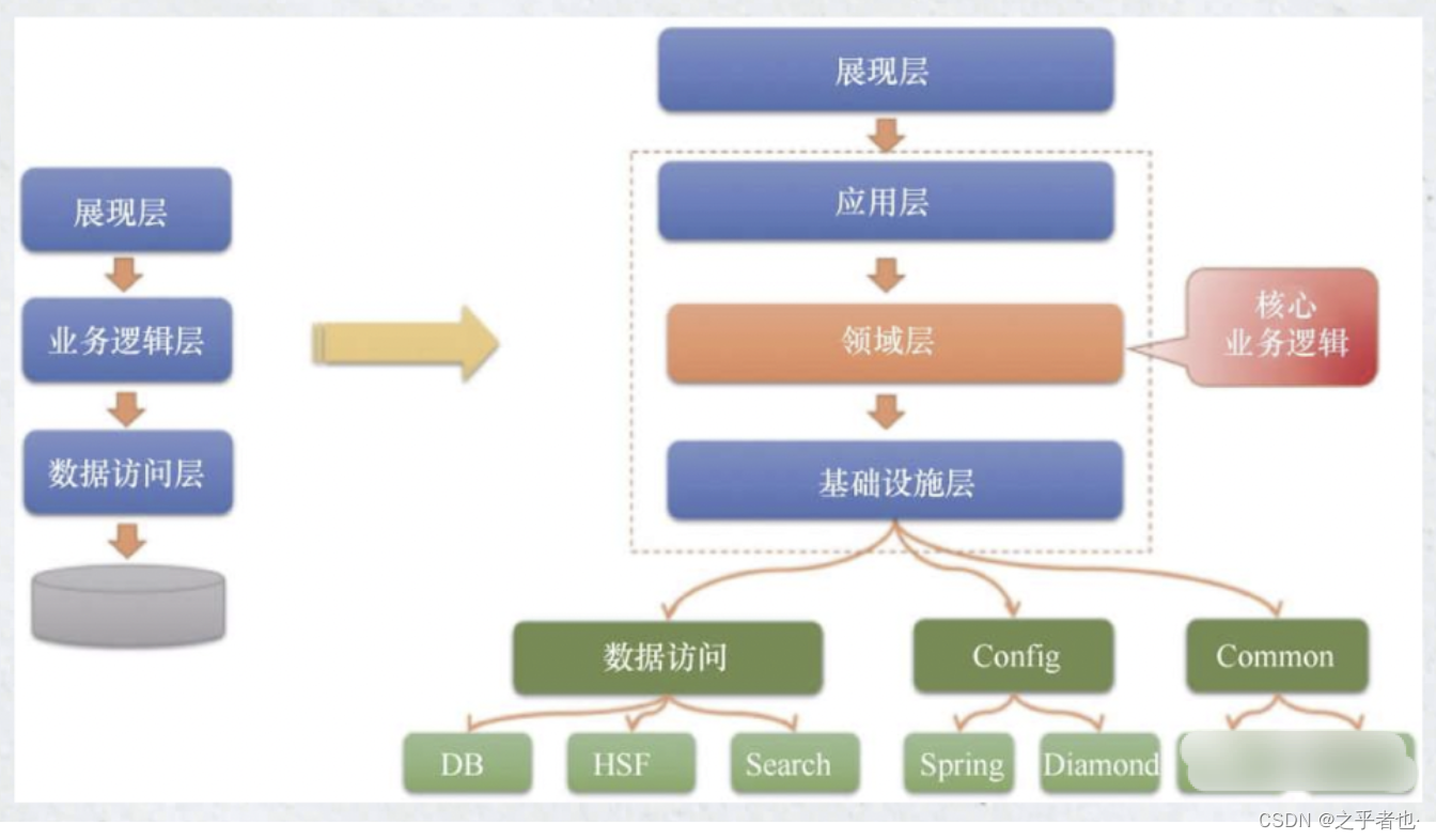 实现 :包括数据库访问层、外部服务通信层、日志记录、配置等,这些组件对系统的业务逻辑是透明的,通过接口与应用程序层和领域层进行交互