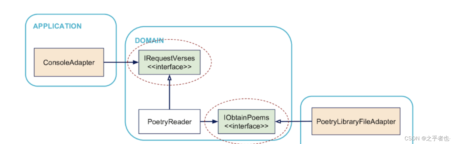技术上,就是 Application 和 Infrastructure 都不能直接互相调用对方的功能或者操作,只有经过 Domain 的接口才能沟通,确保 Domain 部分具有完整的独立性,不受 Application 和 Infrastructure 变更的影响,从而保持稳定,这样的代码结构易读、易管理、易维护。