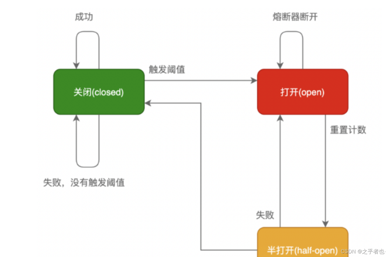 当熔断器打开一段时间后,会转为半打开状态,这时熔断器允许调用端发送一个请求给服务端,如果这次请求能够正常地得到服务端的响应,则将状态置为关闭状态,否则设置为打开。