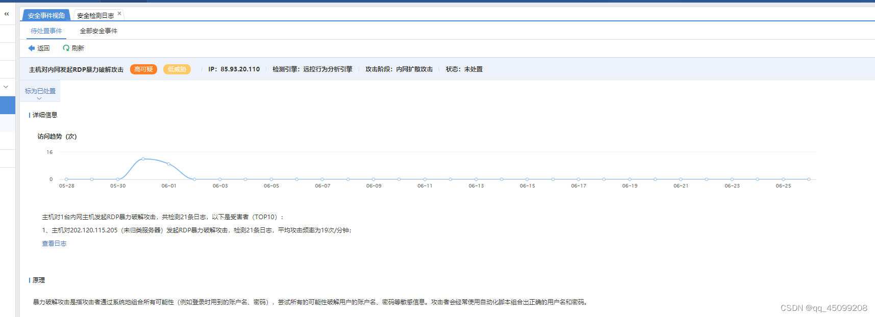 安全事件分析思路及逻辑 态势感知,WAF,防火墙,EDR,蜜罐等 防火墙:访问控制类产品,网络出现后的第一类安全产品 隔离内网、外网以及DMZ区并控制用户访问(DMZ:业务系统对外发布区,Web应用服务器,邮件服务器等) 通常工作在网络层,部署在网络边界或者重要系统边界 IPS:入侵防御系统,访问控制类产品 发现攻击后,能够及时拦截阻断 对流经设备的网络流量进行分析、监控 由防火墙的地方就有IPS,通常串接在网络主干链路上,或者重要业务系统边界。
