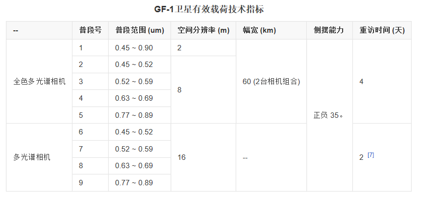 原创 高分系列卫星载荷参数