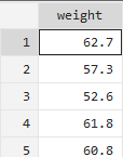 数据(案例4.1)是河南省某高校5年前对大四学生体检时,发现学生的平均体重是67.4KG.最近又抽查测量了该校53名大四学生的体重。试用单一样本T检验的操作命令判断该校大四学生的体重与5年前相比是否有显著差异。