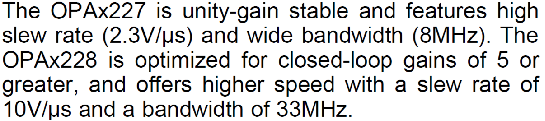 我们前面讲到的OPA690,OPA842,就使用于高频,你将它使用于低频很可能会出现一些意想不到的问题,平时的时候就可以使用opa227,228.还有NE5532.。