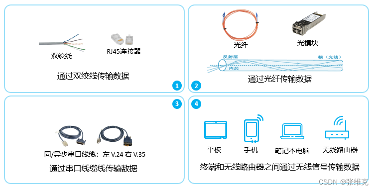 数据到达物理层之后,物理层会根据物理介质的不同,将数字信号转换成光信号、电信号或者是电磁波信号。