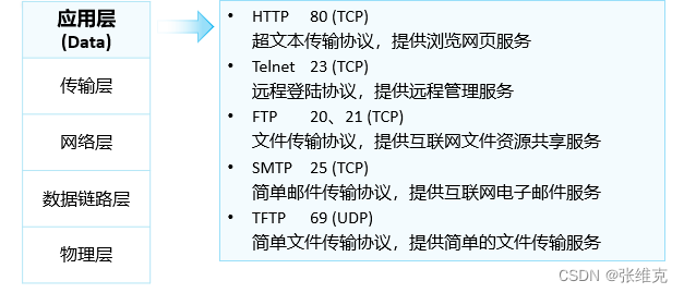 应用层为应用软件提供接口,使应用程序能够使用网络服务。应用层协议会指定使用相应的传输层协议,以及传输层所使用的端口等。