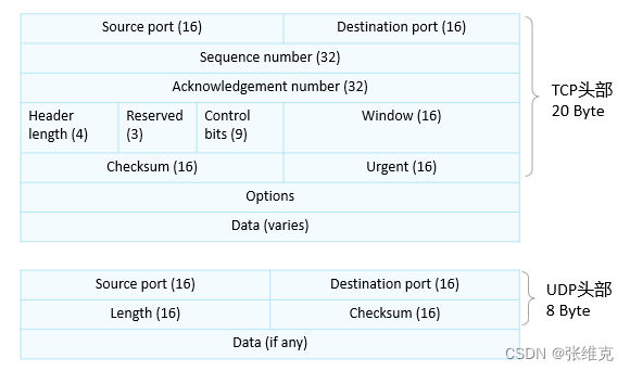 定义:大小16bit,范围为0~65535,其中0~1023属于知名端口号,1024~65535属于自定义端口号;
