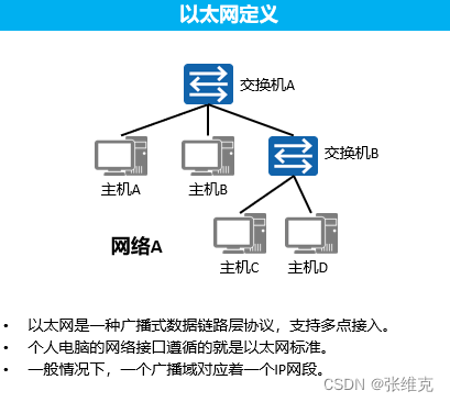 Ethernet( 以太网协议 ):一种多路访问广播型数据链路层协议,是当前应用最为广泛的局域网技术。