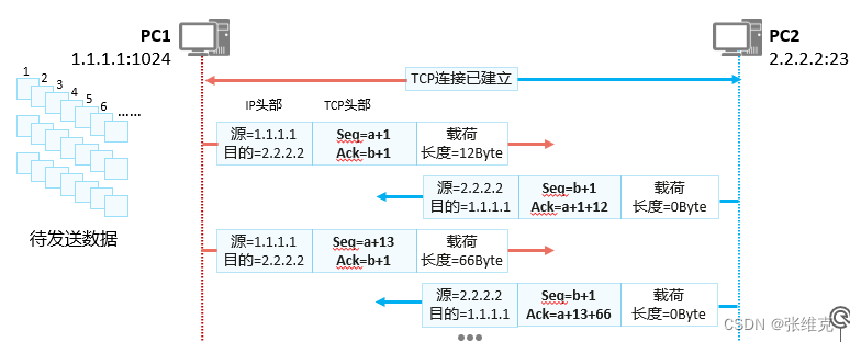 所有基于TCP的流量都会携带一个序列号,当设备发出一份基于TCP的流量后,必须收到对端的ACK报文进行确认,才会继续发送下一份,否则会进行重传;