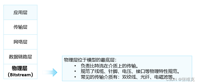 1.物理层:将已经打包好的数据转换成适合在物理链路上进行传递的信号进行发送;