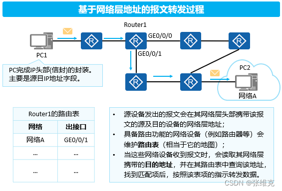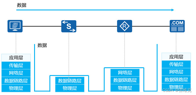 数据转发:数据从发送端发出,到接收端之间,经过的网络设备负责将数据进行转发
