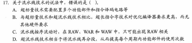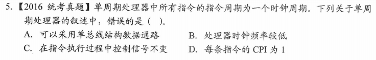 解:一看就是D错,总是在每一个时钟脉冲信号来的时候执行一条新的指令,这是我们之后讲的指令流水线的方式,选D