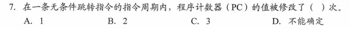 解:取址周期结束后,PC+1,执行无条件跳转指令后,PC又一次被修改,因此为2次,选B